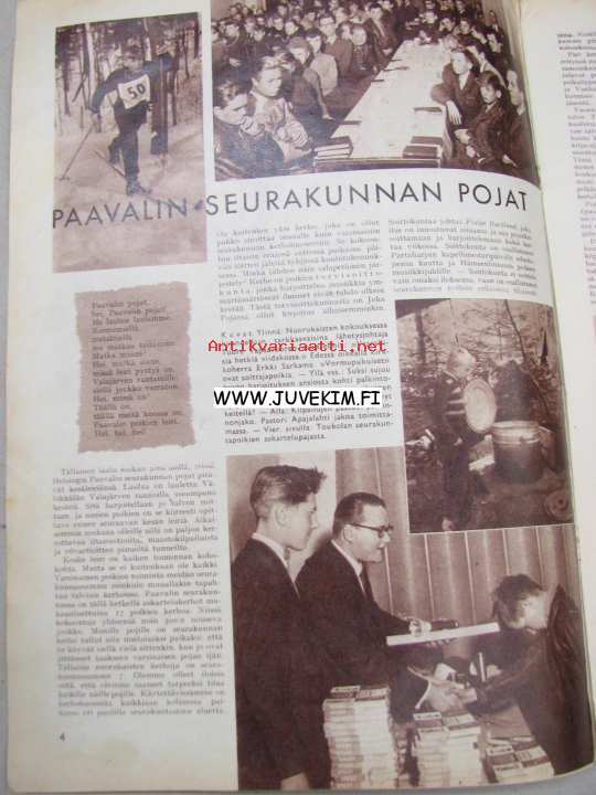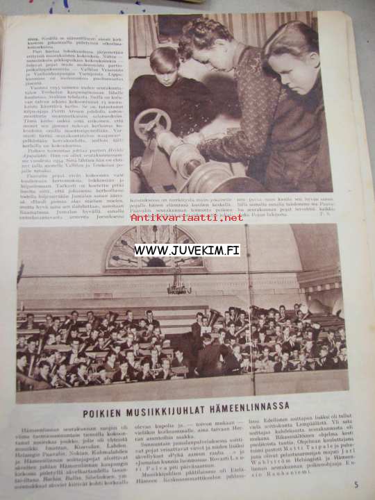 | Saatavilla | 1 kpl | | Julkaisuvuosi | 1958 | | Sivuja | 16 | | Kunto | K2 | | kannet irti, risa | | Sidonta/painoasu | Lehti | | Kielet | Suomi |