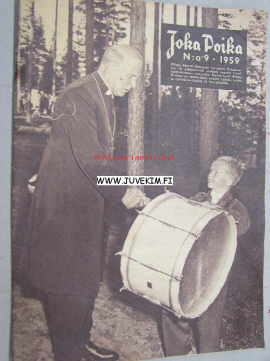 Suomal. Kirjallisuuden Seuran Kirjapaino, 1959Lehden kansikuvassa vuodelta 1959 piispa Martti Simojoki tervehtii Partaharjun III juhlaleirillä poikien soittokunnan rumpalia.