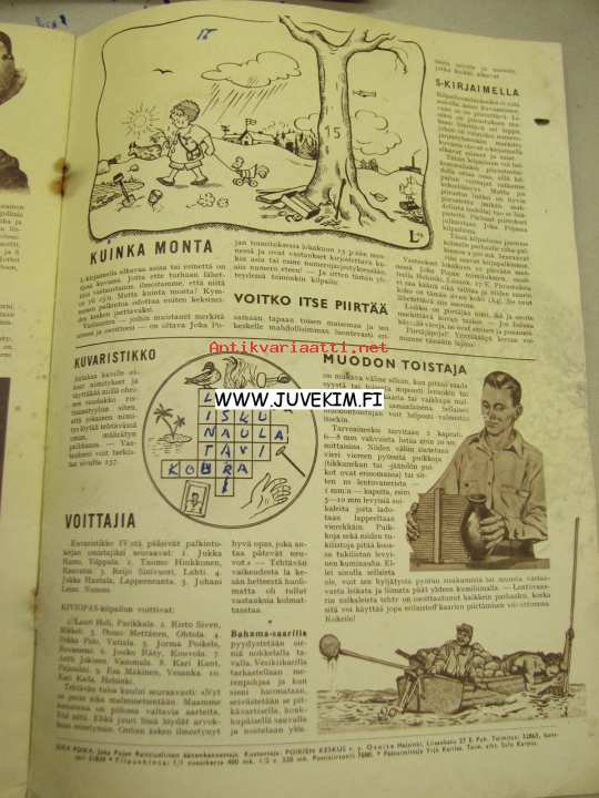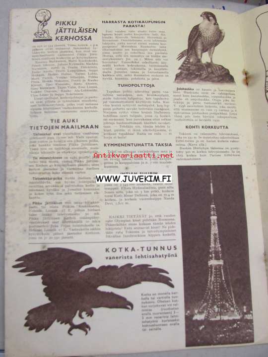 | Saatavilla | 1 kpl | | Julkaisuvuosi | 1959 | | Sivuja | 16 | | Kunto | K2 | | Sidonta/painoasu | Lehti | | Kielet | Suomi |