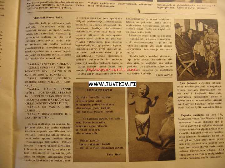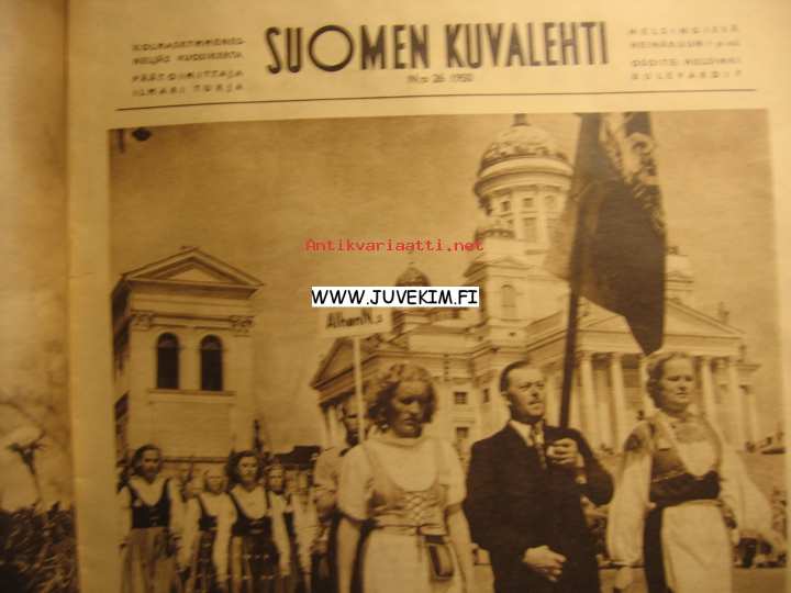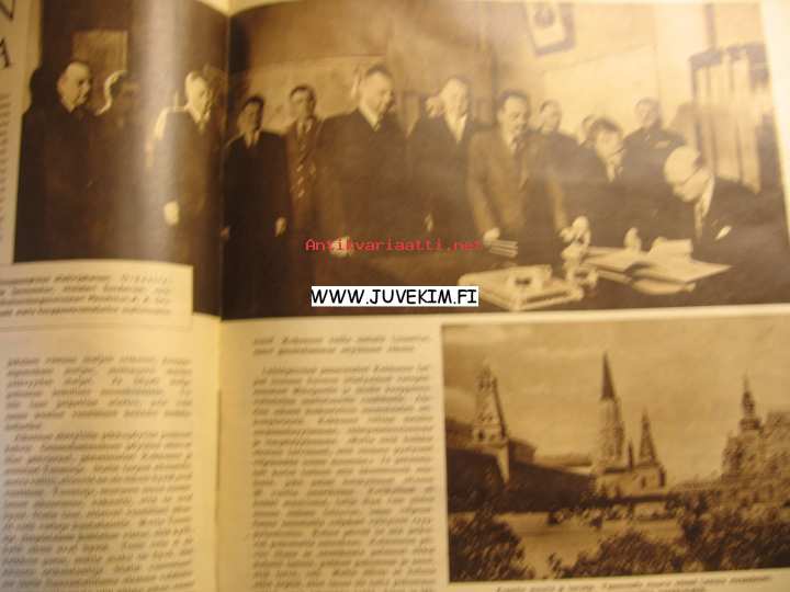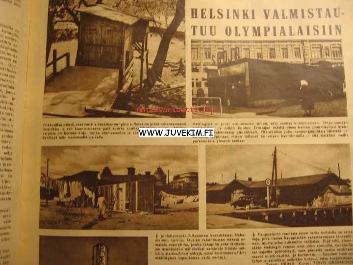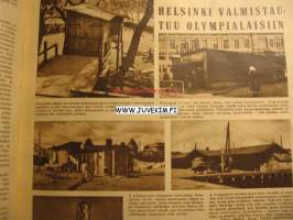 Suomen Kuvalehti 1950 nr 26 ilm. 1.7.1950. Artikkeli kuvineen: Kekkonen Moskovassa. Helsingin Stadion (ilmakuva) olympialaisten valmistelua koskevassa artikkelissa