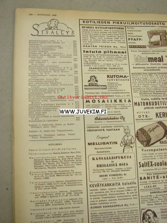 | Saatavilla | 1 kpl | | Julkaisuvuosi | 1960 | | Sivuja | 64 | | Kunto | K4 | | Sidonta/painoasu | Lehti | | Kielet | Suomi |