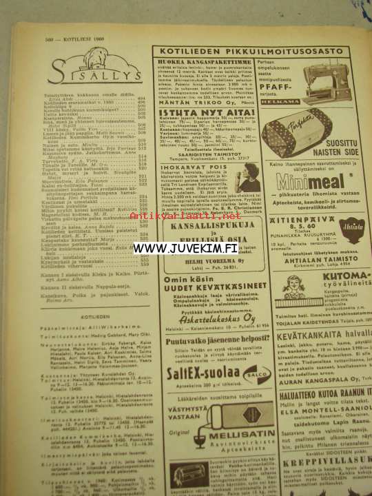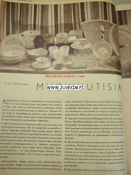 Kotiliesi 1960 nr 8, virkattu päiväpeite palaa makuuhuoneeseen, muoviuutisia, turvekatto, nainen ja auto, lumen ja jään pappila Utsjoki