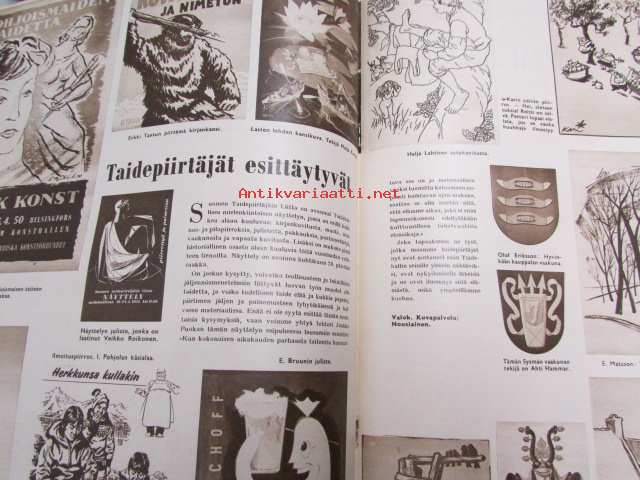 Suomen Kuvalehti 1955 nr 15, Wäinö K. Latavala: Cymbidium orkideain kuningas, Unto Seppänen, taidepiirtäjät esittäytyvät, Karhula-iittala Löytö-sarjan mainos
