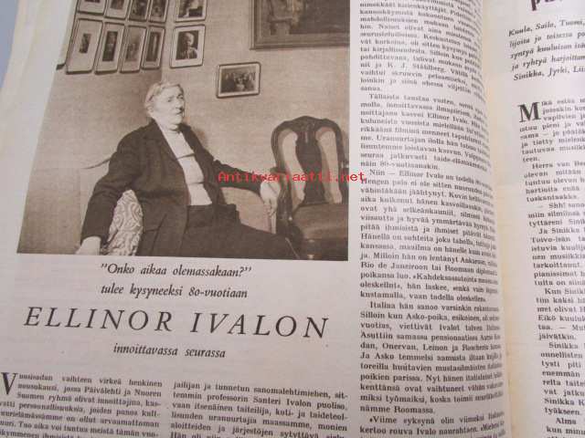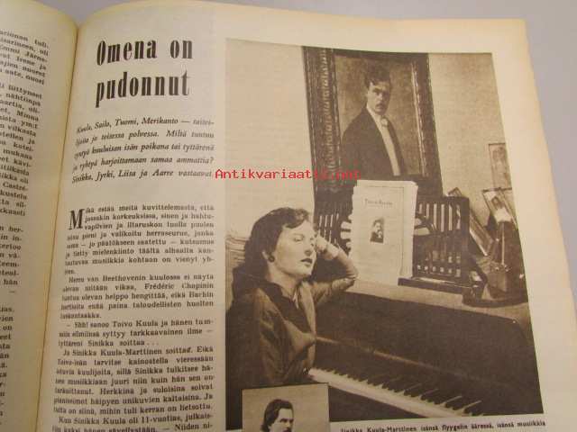 Suomen Kuvalehti 1955 nr 12, Ellinor Ivalo, Toivo Takki, Kuula, Sailo, Tuomi, Merikanto - taiteilijoita toisessa polvessa. Miltä tuntuu syntyä kuuluisan isän poikana tai tyttärenä ja ryhtyä harjoittamaan samaa ammattia?