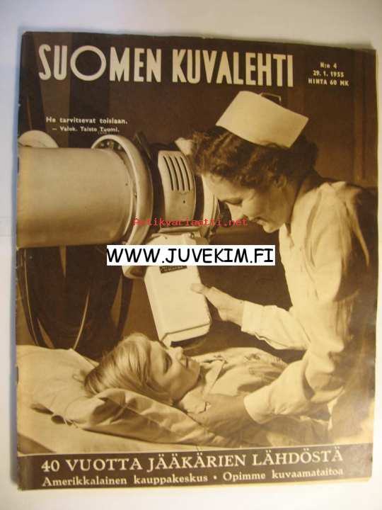 | Saatavilla | 1 kpl | | Julkaisuvuosi | 1955 | | Sivuja | 48 | | Kunto | K2 | | Sidonta/painoasu | Lehti | | Kielet | Suomi |