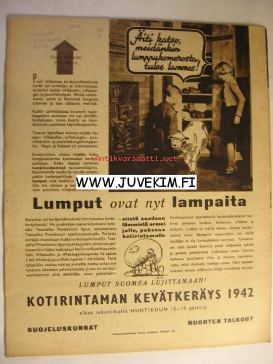 | Saatavilla | 1 kpl | | Julkaisuvuosi | 1942 | | Sivuja | 24 | | Kunto | K2 | | Sidonta/painoasu | Lehti | | Kielet | Suomi |