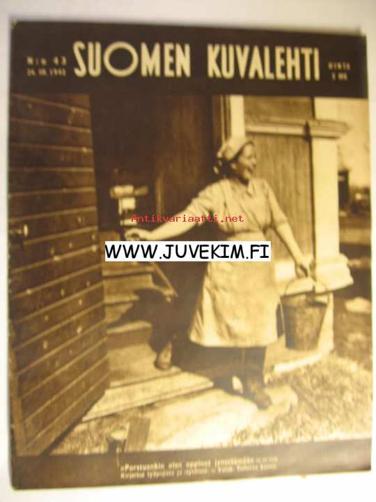 Suomen Kuvalehti 1942 nr 43, sotapesä Karhunpesä, missä sotilaitamme palvelee kenraalitar