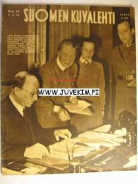 Suomen Kuvalehti 1942 nr 45, Milloin päästään rauhan töihin?, kulissien takana - Suomen Kansallisteatterissa, kotiapulaiskysymys odottaa meikkäkin ratkaisuaan, luutn. Joko Saarinen: tulituksen keskellä öisellä taivaalla