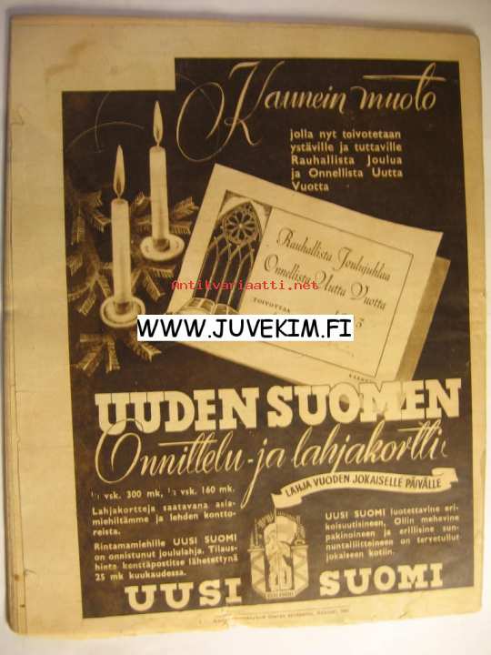 Suomen Kuvalehti 1942 nr 51-52 19.12.1942 Runsaasti ajankuvaa vuodelta 1942.