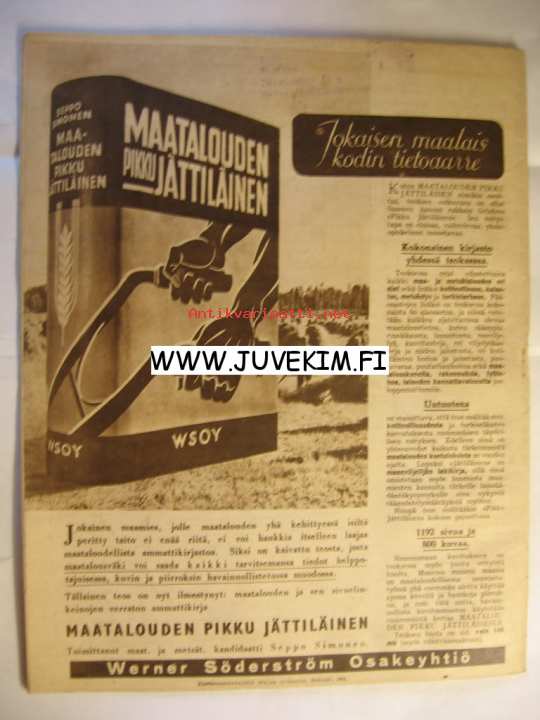 | Saatavilla | 1 kpl | | Julkaisuvuosi | 1944 | | Kunto | K2 | | Sidonta/painoasu | Lehti | | Kielet | Suomi |