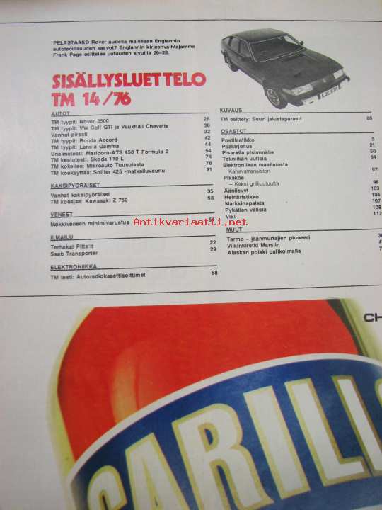 Tekniikan Maailma 1976 nr 14 TM 14/76: Rover 3500, VW Golf GTI, Vauxhall Chevette, Honda Accord, Skoda 100L, Lancia Gamma, Solifer-matkailuvaunu