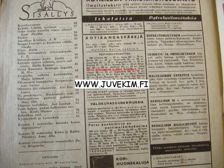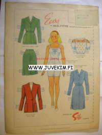 Kotiliesi 1948 nr 3 Silotyttö paperinukke nr 1 Eeva, kutoisin omista villoista mutta millaista?, uutta Kannasta Helsingin liepeillä.