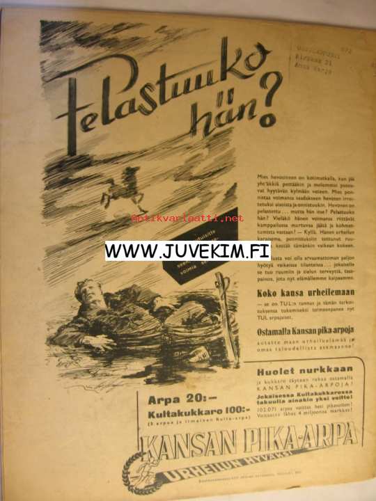 | Saatavilla | 1 kpl | | Julkaisuvuosi | 1945 | | Kunto | K2 | | Sidonta/painoasu | Lehti | | Kielet | Suomi |
