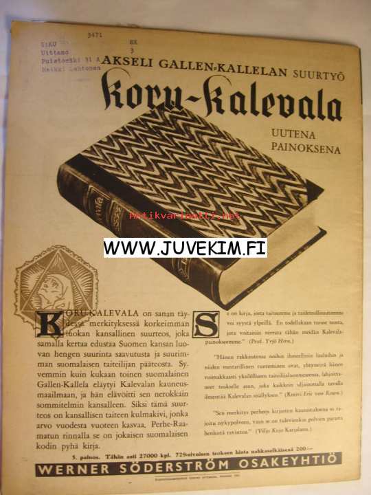 Kustannusosakeyhtiö Otavan Syväpaino, 1941