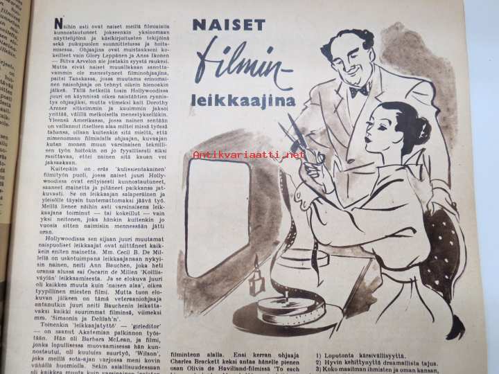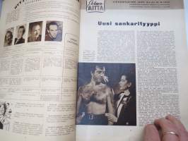 Elokuva-Aitta 1950 nr 21, Kansi Marina Berti, Naiset filminleikkaus, Jorma Vartiovaara tähtiä tervehtimässä, Tähtikuvat Uuno Laakso - Emma Väänänen - Rauha Rentola