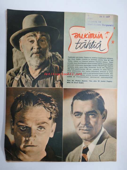 Elokuva-Aitta 1951 nr 16, Kansikuva Maria Casares, Rudolph Valentino, Ilse Werner, Mirjami Kuosmanen, Tähtikuvasto Clark Gable, James Gagney, Walter Huston, ym.