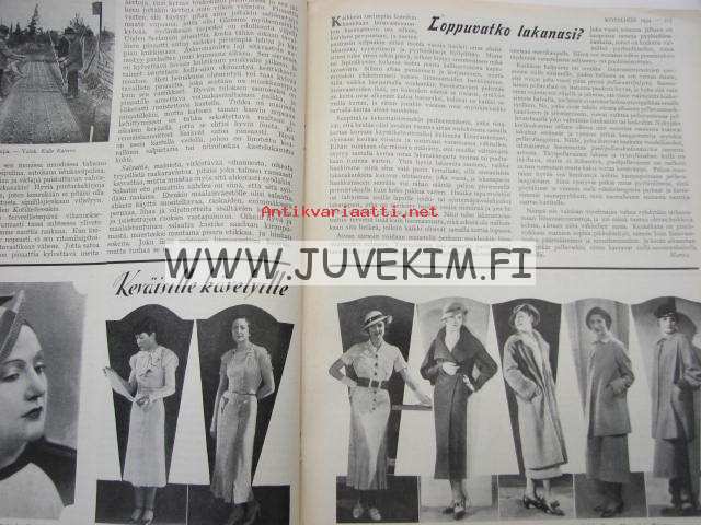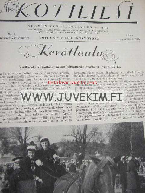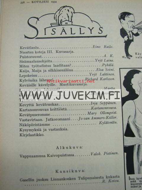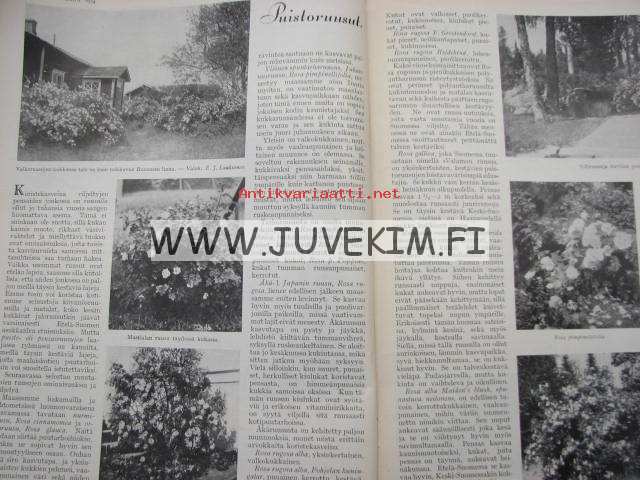 Kotiliesi 1934 nr 9 kansi Rudolf Koivu "Gasellin juoksu Linnankosken Tulipunaisesta kukasta", puistoruusut, nuorten koteja III, värejä valitaan huoneisiin -