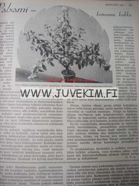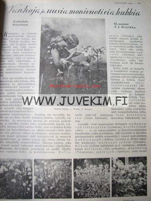 Kotiliesi 1934 nr 7 kansi Rudolf Koivu "Kirkkotie Juhani Ahon Lastuista", Palsami kotiemme kukka, mämmi, vanhoja ja uusia monivuotisia kukkia (T.J.Hintikka - 3