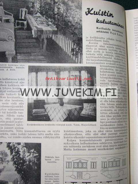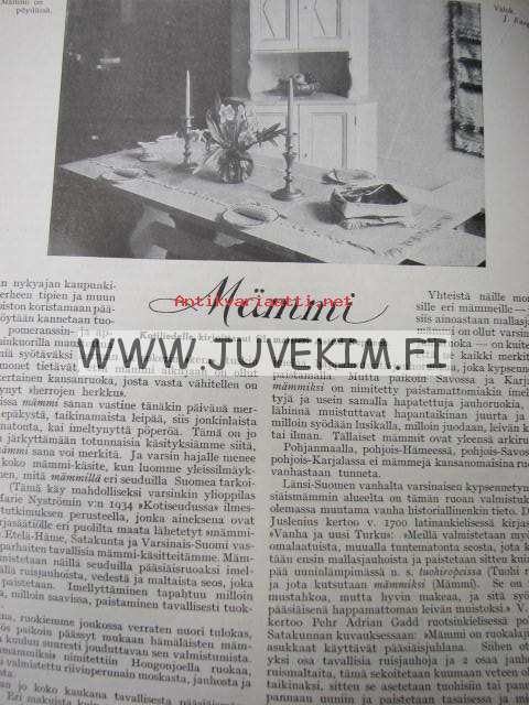Kotiliesi 1934 nr 7 kansi Rudolf Koivu "Kirkkotie Juhani Ahon Lastuista", Palsami kotiemme kukka, mämmi, vanhoja ja uusia monivuotisia kukkia (T.J.Hintikka - 3 sivua), kuistin kalustaminen