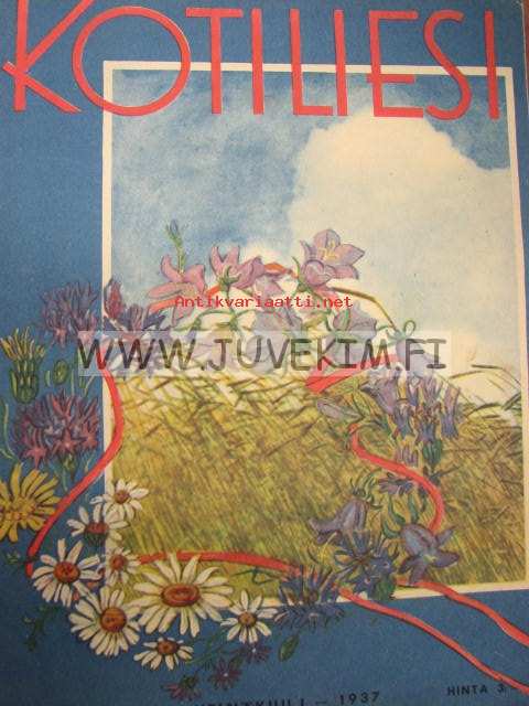Kotiliesi 1937 nr 13 heinäkuu 1937. Aiheita: pirtanauhojen teko, maalaiskotien työnjako, uusia herkullisia kylmiä juomia, lapset piirtävät. Ajankuvaa, mainoksia ja ruokaohjeita vuosi 1937.