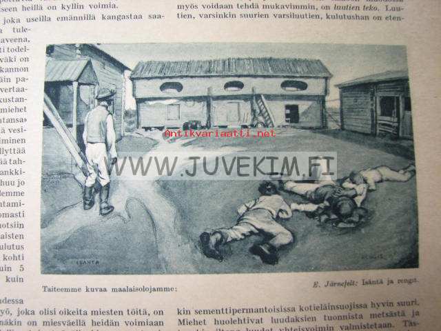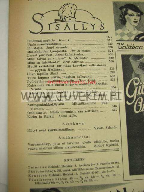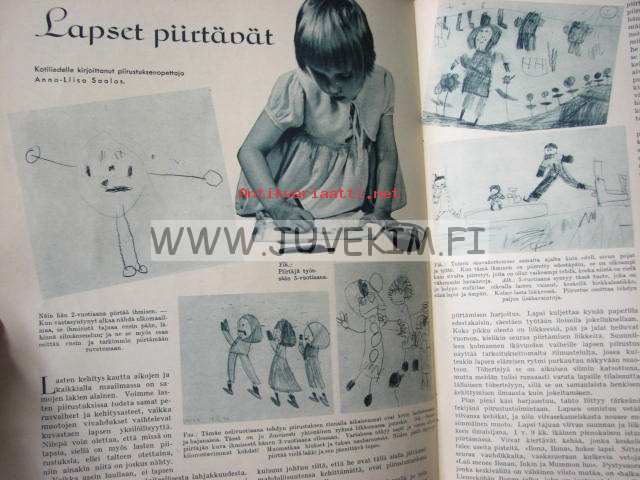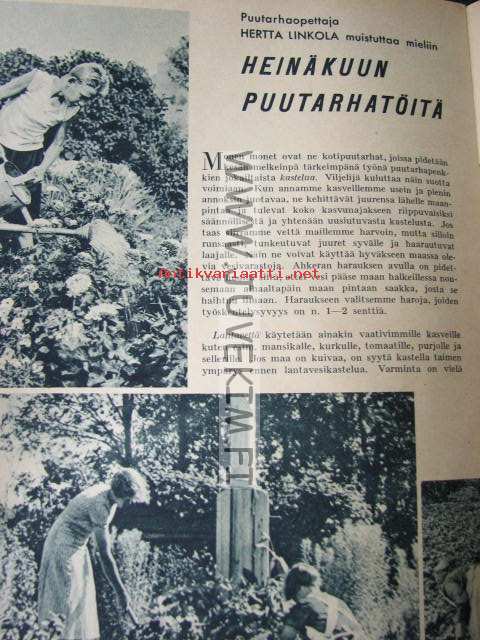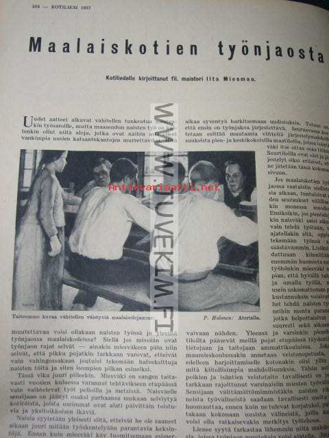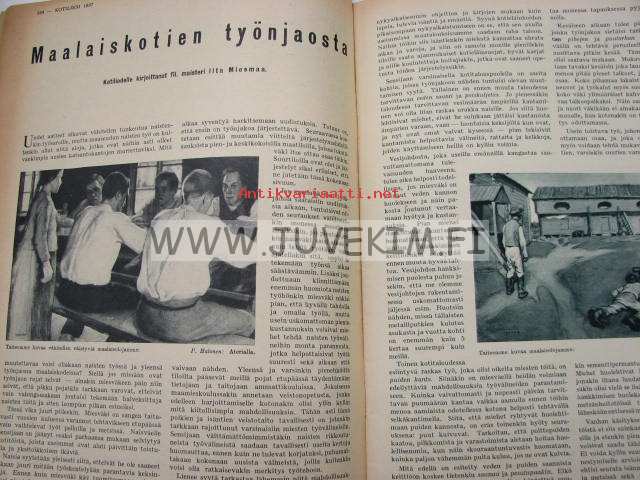 Kotiliesi 1937 nr 13 heinäkuu 1937. Aiheita: pirtanauhojen teko, maalaiskotien työnjako, uusia herkullisia kylmiä juomia, lapset piirtävät. Ajankuvaa,