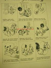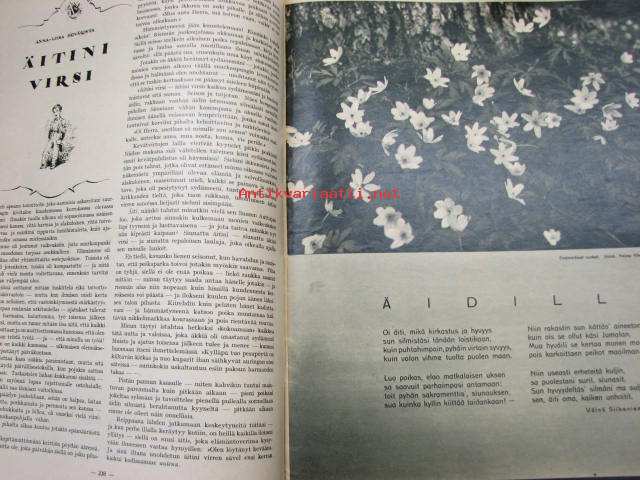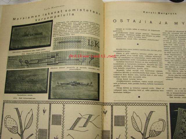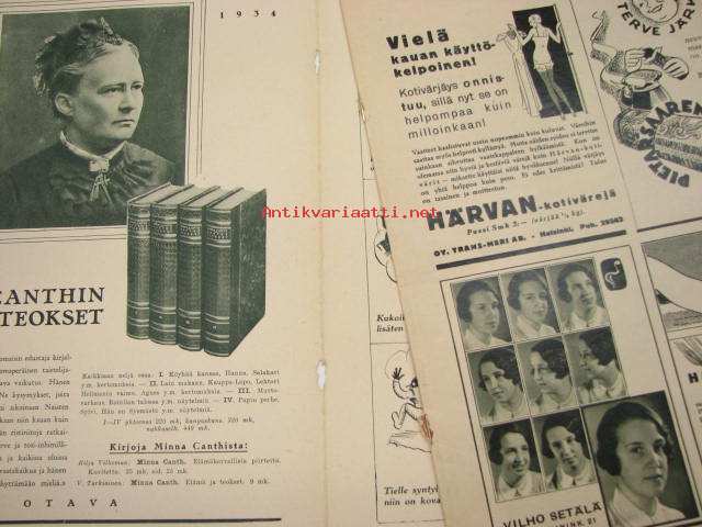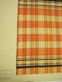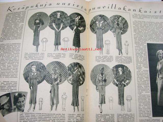 Kesämuotia 1934 esitellään. Takakannessa pöytäliinakangas, suunnittelijana Alli Turunen.