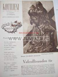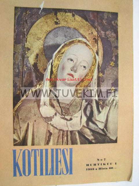 Kotiliesi 1953 nr 7, Silo, Katejuhla, Saksan tilanne, Tästä taideteoksesta pidän, Kukkia, Keittiö, Kieku & Kaiku, Jalostaja, runsaasti mainoksia, ym.