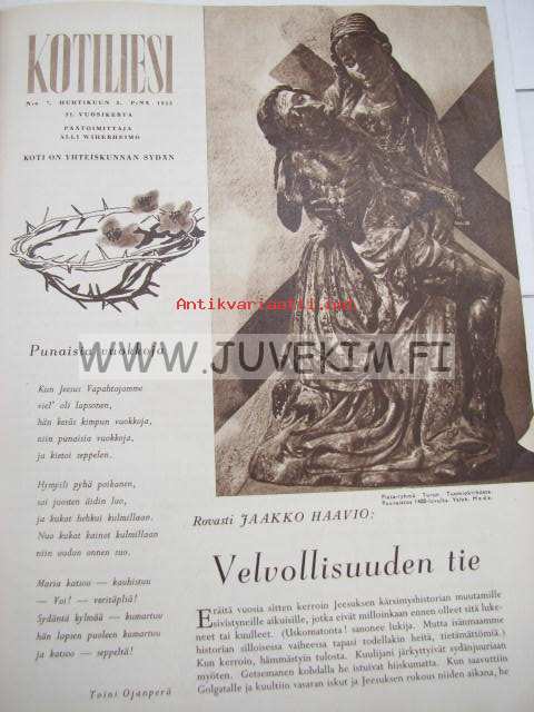 | Saatavilla | 3 kpl | | Julkaisuvuosi | 1953 | | Sivuja | 44 | | Kunto | K2 | | Sidonta/painoasu | Lehti | | Kielet | Suomi |