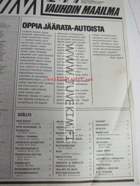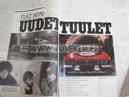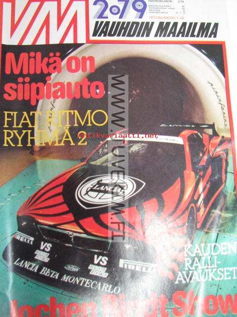 Vauhdin Maailma 1979 nr 2 -mm. Englantilainen näkemys street Rod'ista- ei vain jenkkiautosta, Tom Percival vei Canon Trophyn, Autoilun historiaa Adler, Jääspeedwayn SM, Essenin Racing Car Show, Fiat 1979 uudet tuulet "Piper super Bug" Bugatti 35 B21 x 29 cm.