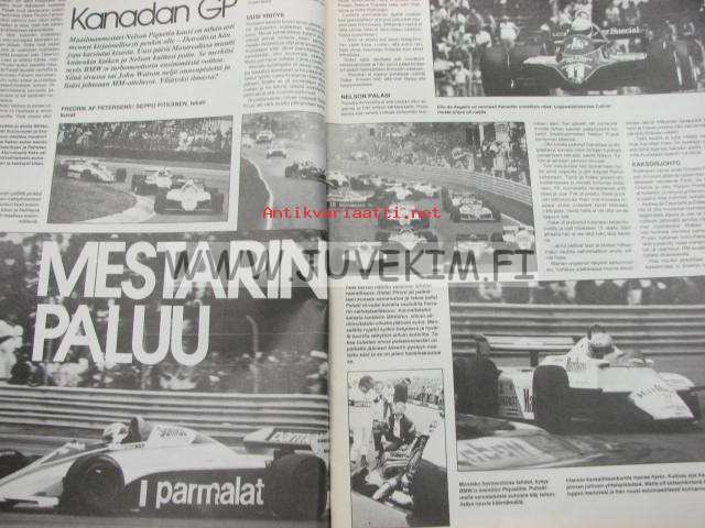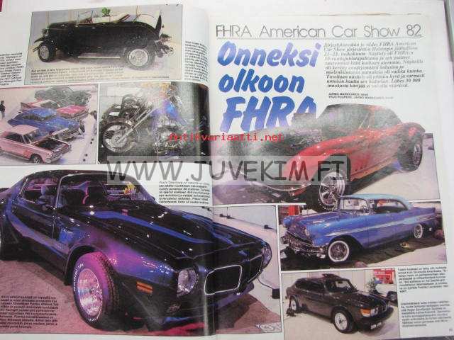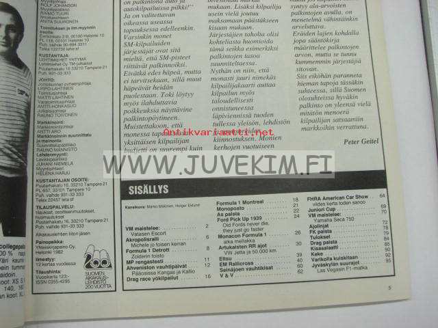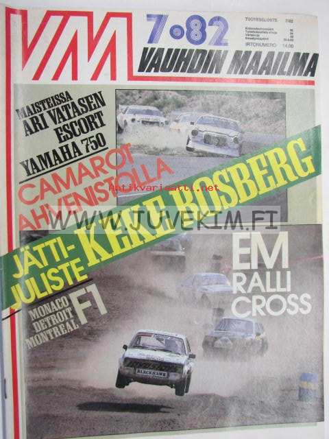 Vauhdin maailma 1982 nr 7 -mm. Yamaha XJ 750 Seca, FHRA American Car Show 82 Helsingin jäähalli, Ahveniston EM-rallicross, Superbike ruissalon ajojen parasta antia, F1 Detroit, Kanadan ja Monacon GP, Ford 1939 pick-up "Old fords never die", Akropolis ralli.21 x 29 cm.