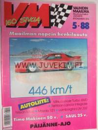 Vauhdin maailma 1988 nr 5 -mm. Tero Palmroth CARTiin, Truck MM, Pontiac Trans Am Tvin Turbo, Lancer 4WD Turbo, Fiat Uno merkkiluokka esiintyy, Chevy El Camino SS,