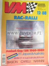 Vauhdin maailma 1988 nr 12 -mm. Formula Ford festival, Formula 1 Japanin ja Australian GP, VM maistelee BMW Z1 -Mitsibishi Colt GTi -Matchless G80, RAC, Ralli-MM