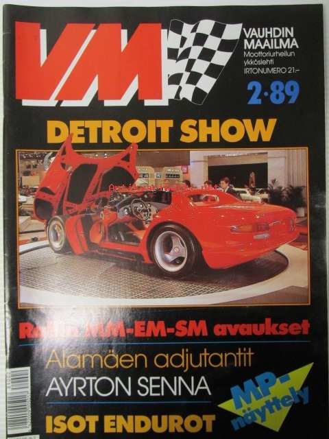 Vauhdin maailma 1989 nr 2 -mm. Paris-Dakar 1989, Junior-SM sataralli, Ruotsin MM-ralli, Ayrton Senna, MP-89 näyttely, Varikolla kuiskitaan, VM maistelee Nissan King Cap ja Seat Ibiza, Street Drag Race säännöt -89, Formula 1 katsaus "mitä oli ja mitä tulee".21 x 29 cm.