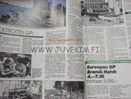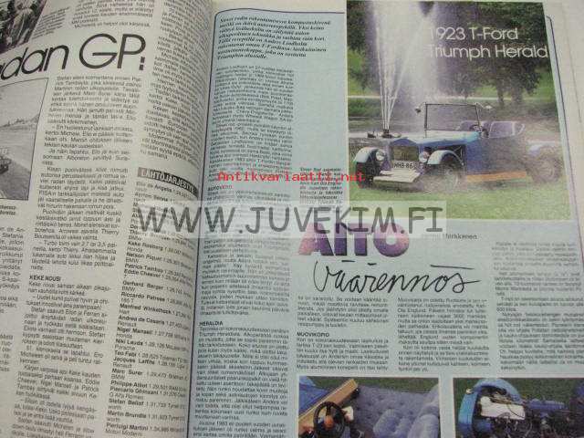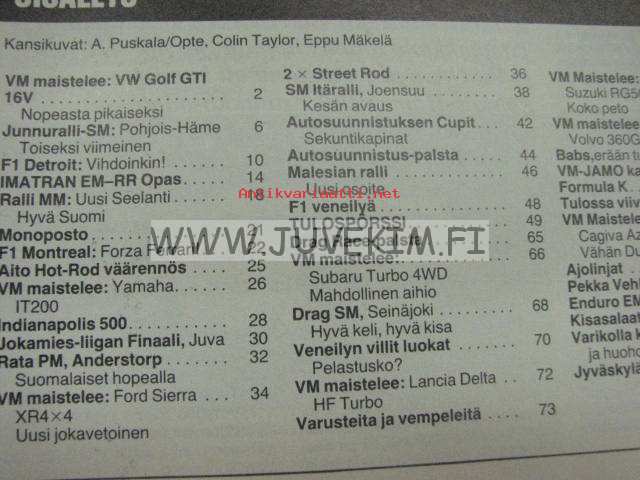 Vauhdin maailma 1985 nr 8 -mm. VW golf GTI 16V, Formula 1 Detroit ja Montreal, Imatran EM-ralli opas, Aito HOt -Rod väärennös, Yamaha IT200, Indiapolis 500, Rata