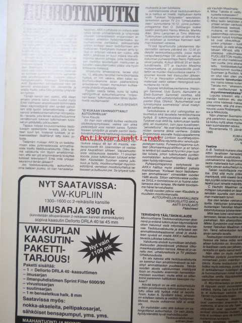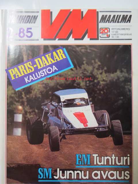 Vauhdin maailma 1985 nr 2 -mm. Peugeot 505 Turbo, Paris -Dakar kalustoa, TunturiralliPitts Special Aerobatic, SM-ralli Marcello, Nissan silvia ja 300ZX, Kuukauden profiili Junnu Koskinen, Matala Manta, Fiat Regata, Opel Kadett, Aprilia 250 Enduro, Yamaha RD 500, Formula Maailma, Junior SM Sataralli, Dodge Charger 426 Hemi.21 x 29 cm.