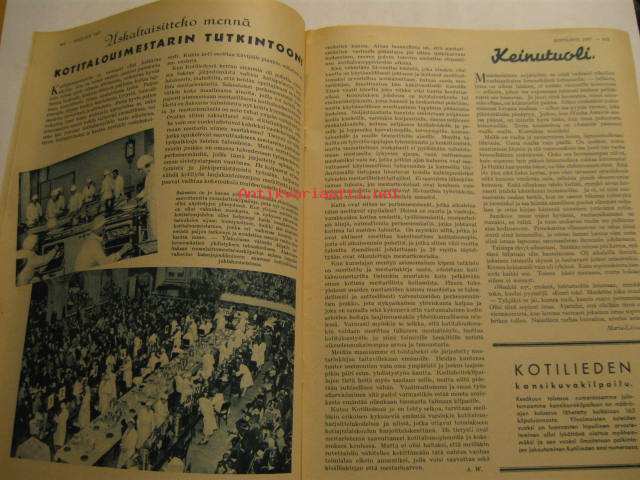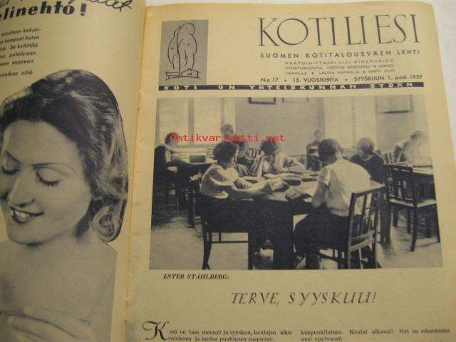 Kotiliesi 1937 nr 17, 1.9.1937, Kansikuva Martta Wendelin, Emäntä Vilhelmiina Syrjälä - Heinola -Härkälä, Pelkäävätkö pikkulapset koulua?, Kotitaolusmestaritutkinto
