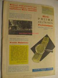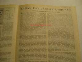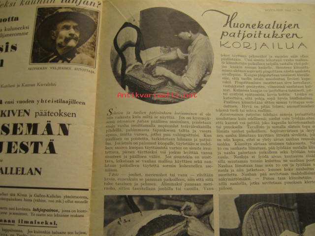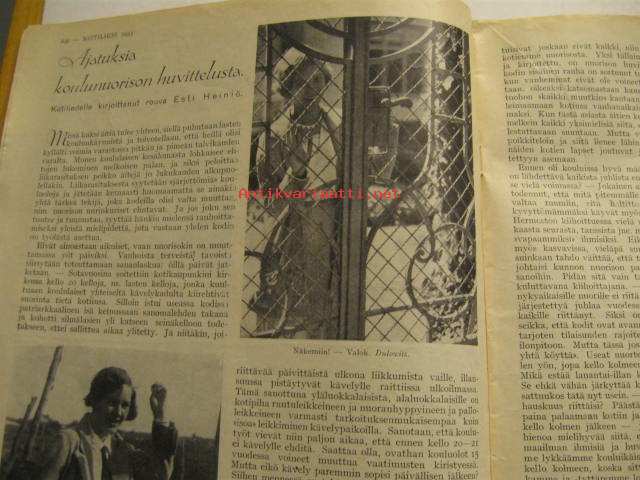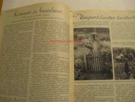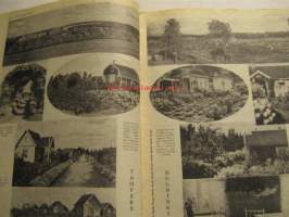 Kotiliesi 1933 nr 19 Lokakuu. Kansikuva Rudolf Koivu. Hatanpään siirtolapuutarha-alueesta koko aukeaman kuvasarja vuodelta 1933. Runsaasti mainoksia, muotia ja