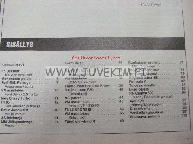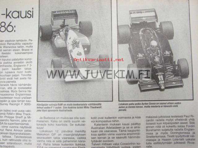 Vauhdin maailma 1986 nr 4 -mm. Formula 1 Brasilia kauden avajaiset, Ralli MM Portugal, INDY Chevy turbo F1 86, MM-jääspeedway, Formula 4BMW 325i 4-veto, Tukholman