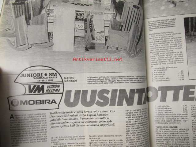 Vauhdin maailma 1987 nr 3, sis. mm. seur. artikkelit / kuvat / mainokset; mm. MM-ralli Ruotsi, Formula kausi lähenee testit täydessä vauhdissa, VM maistelee
