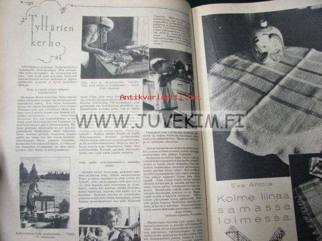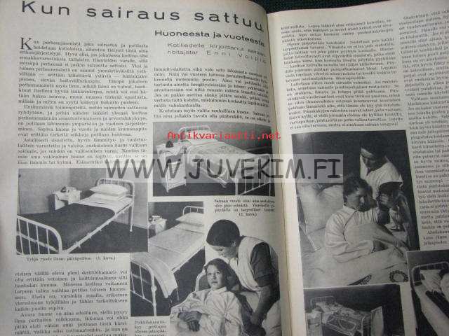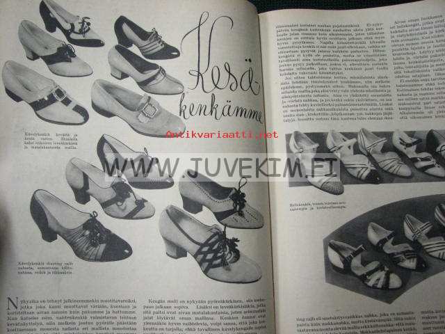 Kotiliesi 1935 nr 7 Huhtikuu 1935 (kansilehti Martta Wendelin) Vuoden 1935 kenkämallistoa esitellään. Ellinor Ivalon koti esitellään. Sinisukka -seurasta
