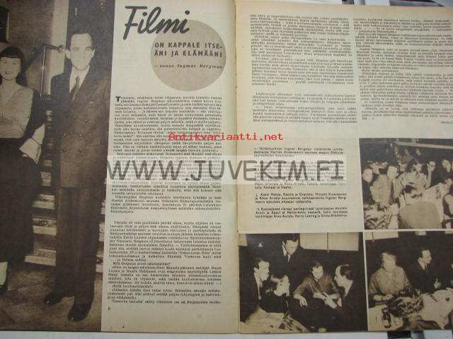 Elokuva-Aitta 1953 nr 8, kansikuva Donald Sinden ja Virginia McKenna, Kyllikki Forsell, Ingmar Bergman: filmi on kappale itseäni ja elämääni