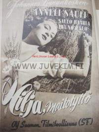 Elokuva-Aitta 1953 nr 24 (Kannessa Elina Pohjanpää) Mies ja synti elokuva, Coletten kuuluisat jalat, elokuva-arvosteluja mm. Niagara (kuva Marilyn), joulu tulee tähdillekin perhekuvia mm. Lemiset, Halttuset, Kassilat, Oravistot, tähtikokoelmassa Ronald Reagan, James Stewart, Rex Harrison