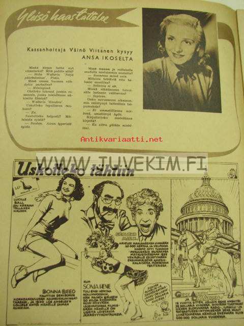 Elokuva-Aitta 1949 nr 21 (kannessa Eleanor Parker), Ritva Arveloa ja Matti Oravistoa tapaamassa, Susan Hayward, Hollywoodin "Kuolemanlaivue", Tuulikki Mäki