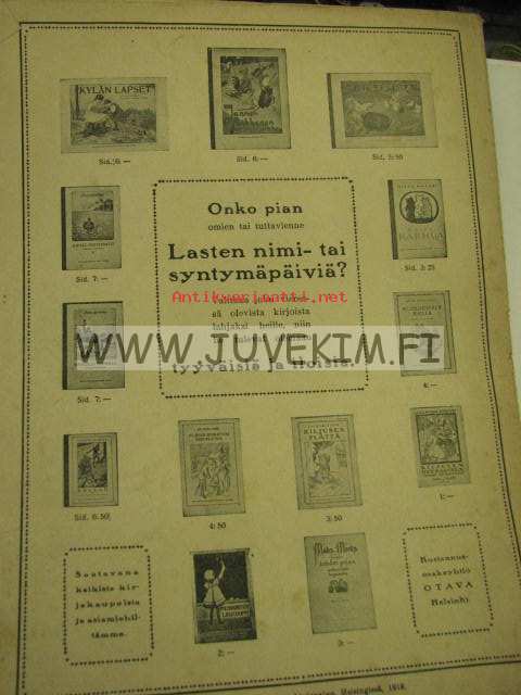 | Saatavilla | 3 kpl | | Julkaisuvuosi | 1919 | | Sivuja | 8 | | Kunto | K2 | | Sidonta/painoasu | Lehti | | Kielet | Suomi |