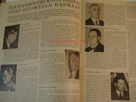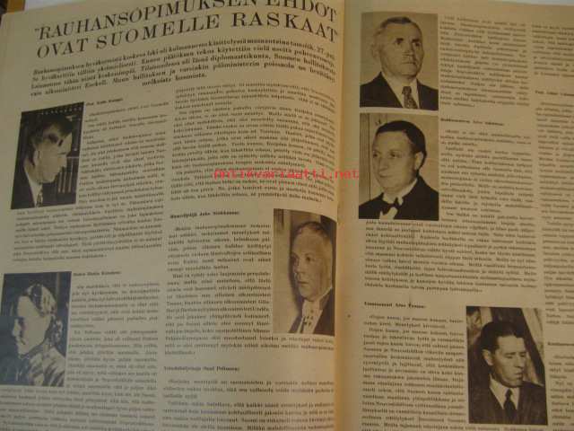 Suomen Kuvalehti 1947 nr 6 ilm. 8.2.1947 kansikuvassa Urho Kekkonen ja K.A. Fagerholm. rauhansopimus puheenvuoroja. Rauhansopimuksen ehdot ovat Suomelle raskaat,