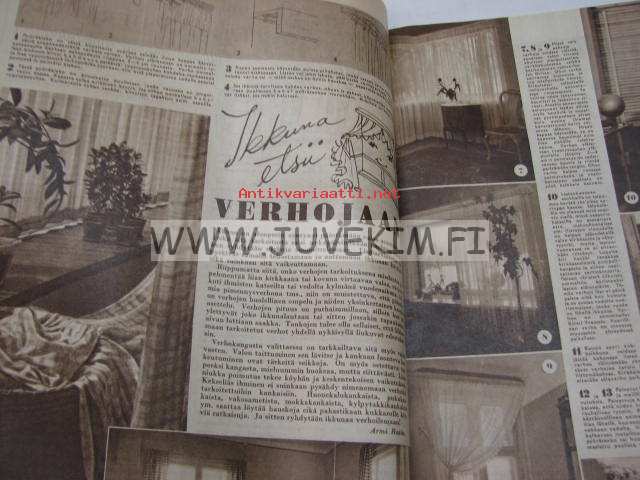 Kotiliesi 1950 nr 7 -mm. Armi Ratian kirjoittama artikkeli: ikkuna etsii verhojaan