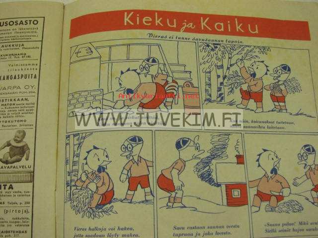 | Saatavilla | 4 kpl | | Julkaisuvuosi | 1950 | | Sivuja | 36 | | Kunto | K3 | | Sidonta/painoasu | Lehti | | Kielet | Suomi |