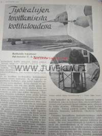 Kotiliesi 1934 nr 3 kansi Rudolf Koivu "Runebergin Hanna", työkalujen teroittamisesta kotitaloudessa, Joutsenon reikäommel, taulujen hoidosta kotona, puvun