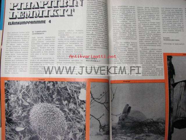 | Saatavilla | 1 kpl | | Julkaisuvuosi | 1973 | | Kunto | K1 | | kansi risa ja tahroja | | Sidonta/painoasu | Lehti | | Kielet | Suomi |