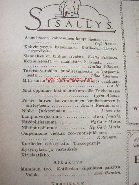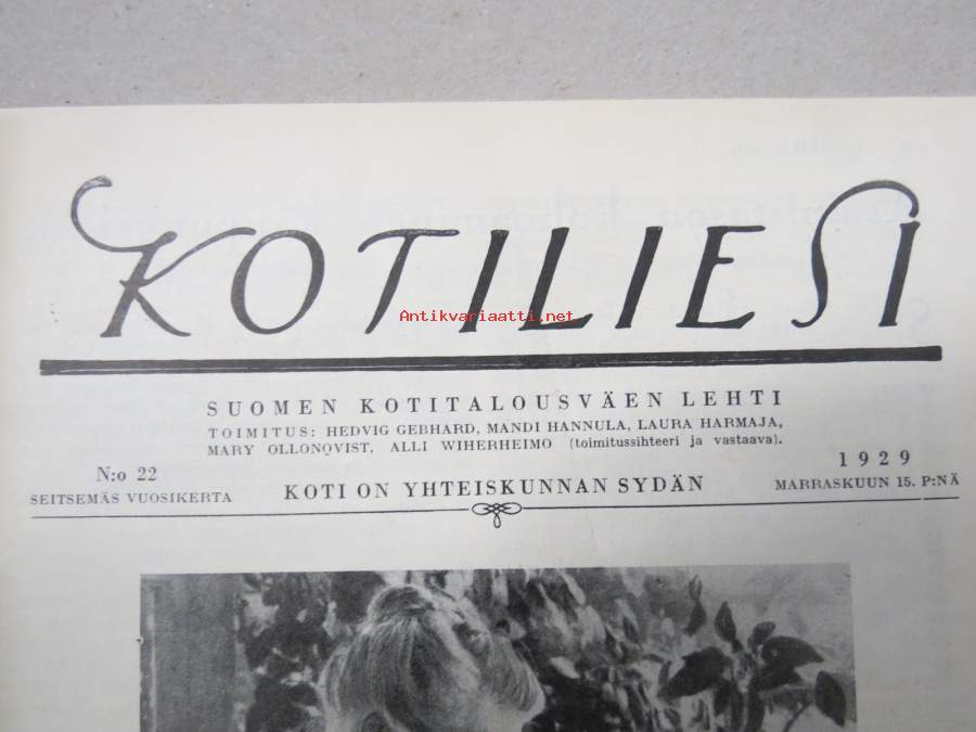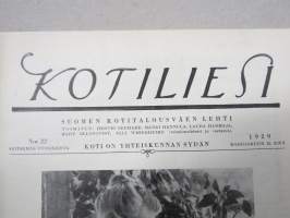 Kotiliesi 1929 nr 22, Kansikuva Ilmari Huitti - Inkeri, Asumistason kohoaminen kaupungeissa, Kahvimyssynäyttely, Kotijuustoista (ja juustomuoteista), Turkistavarat